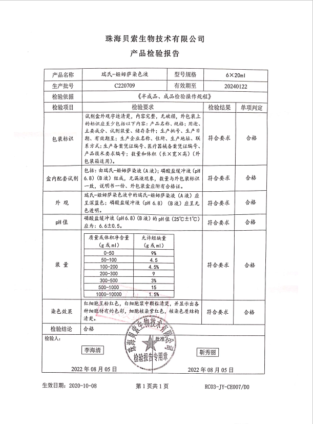 貝索 瑞氏-姬姆薩染色液 20mlx6 C220709