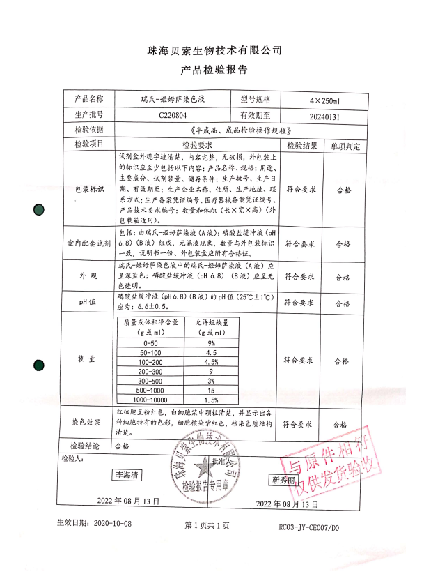 貝索 瑞氏-姬姆薩染色液 250mlx4 C220804