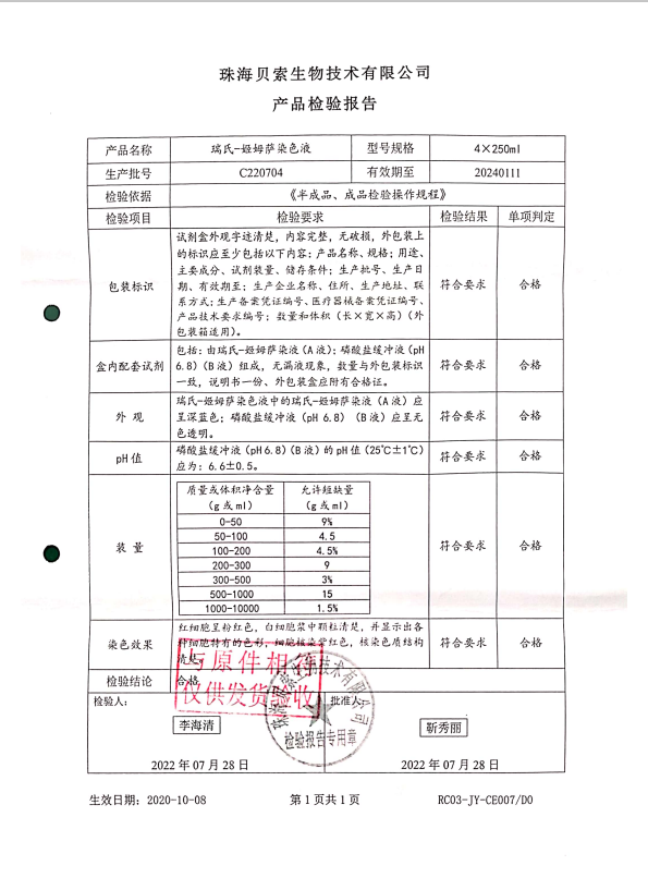 貝索 瑞氏-姬姆薩染色液 250mlx4 C220704