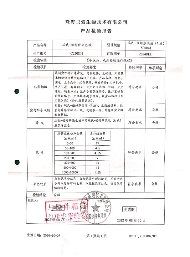 瑞士-姬姆薩染色液 (A液) 1x5000ml C220801