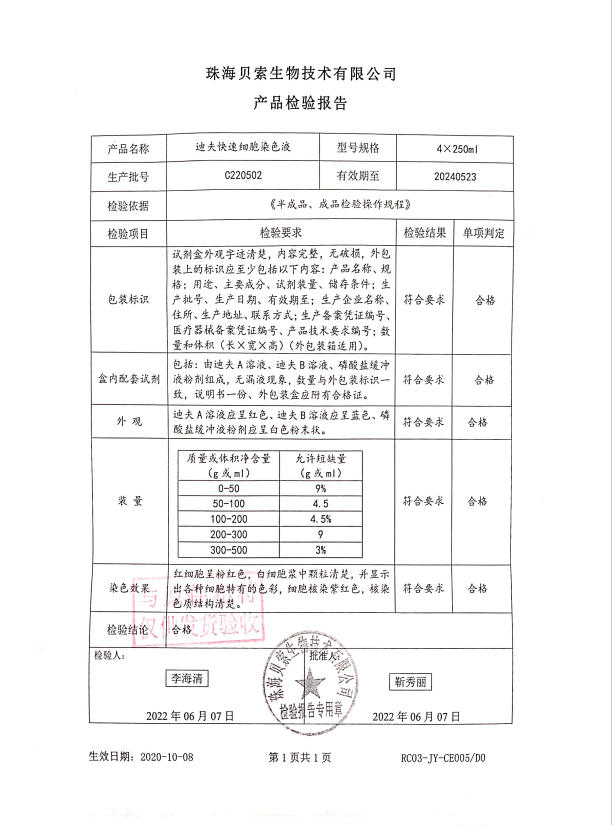 貝索 迪夫快速細胞染色液 250mlx4 BA4100 C220502