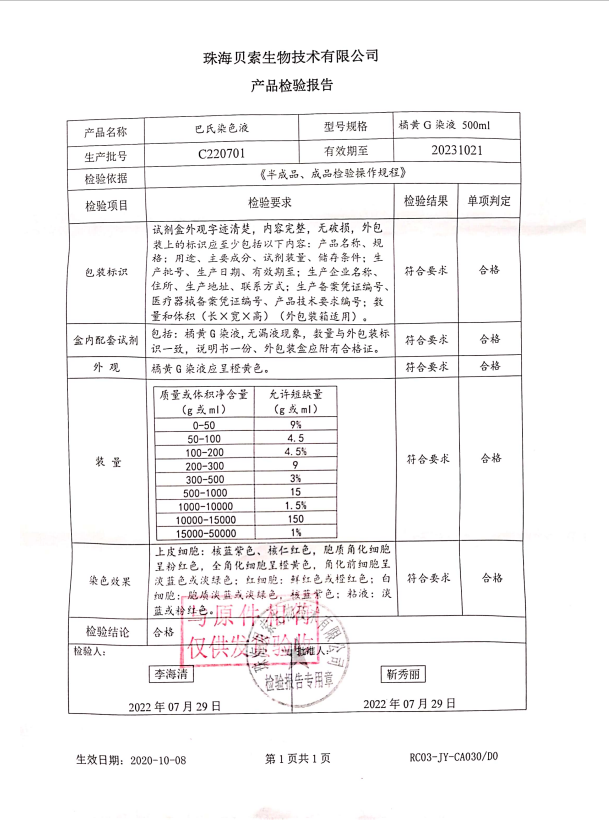 貝索 巴氏染色液 橘黃G 500ml BA4035A C220701