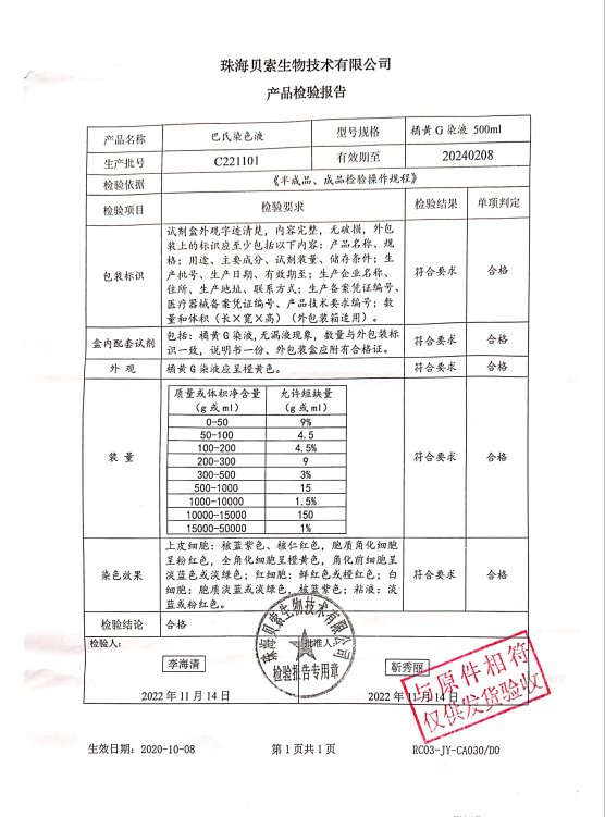 貝索 巴氏染色液 橘黃G 500ml BA4035A C221101