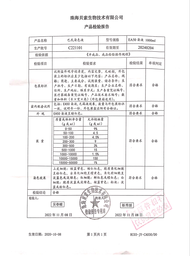 貝索 巴氏染色液 EA-50 1000ml BA4036A C221101