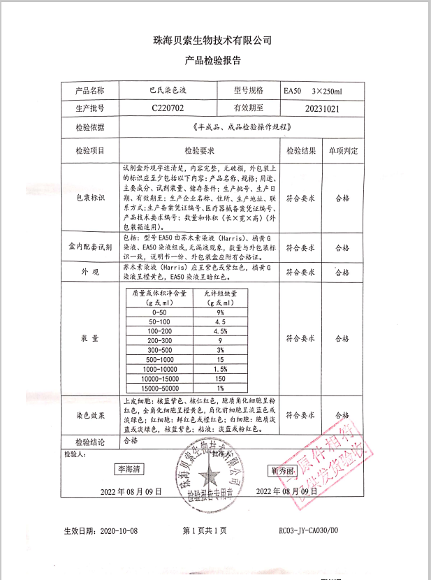 貝索 巴氏染色液 EA-50 3x250ml BA4135A C220702