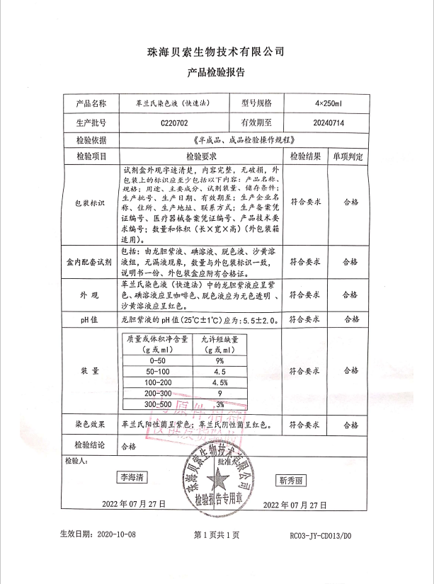 貝索 革蘭氏染色液(快速法) 250ml4盒 BA4012 C220702