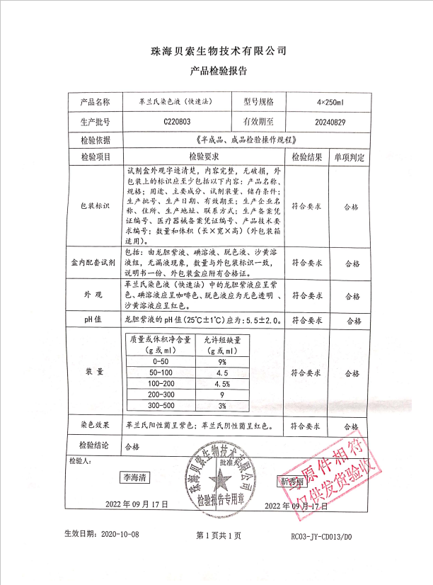 貝索 革蘭氏染色液(快速法) 250ml4盒 BA4012 C220803