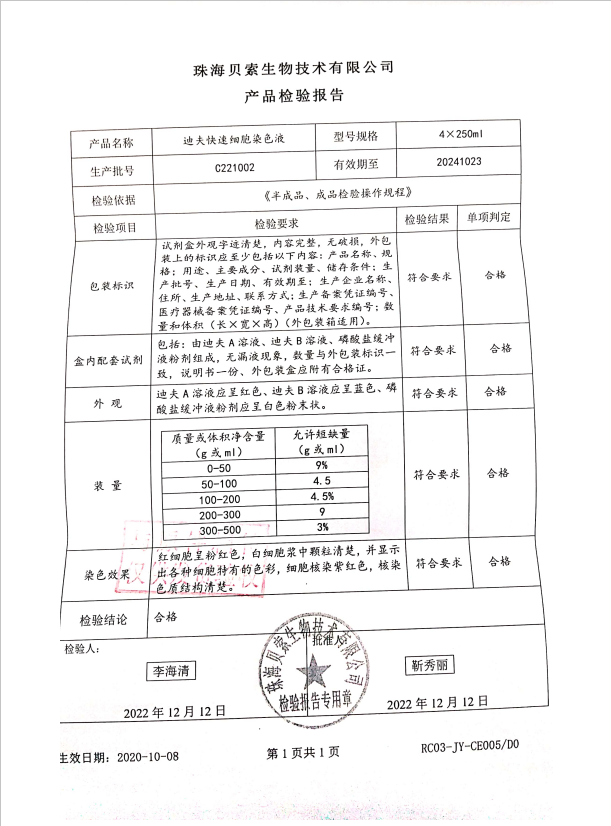 貝索 迪夫快速細(xì)胞染色液 250mlx4 BA4100 C221002