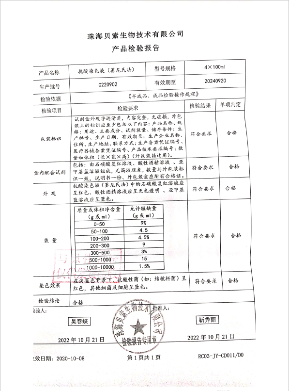 貝索 抗酸染色液(萋尼氏法) 4x100ml C220902