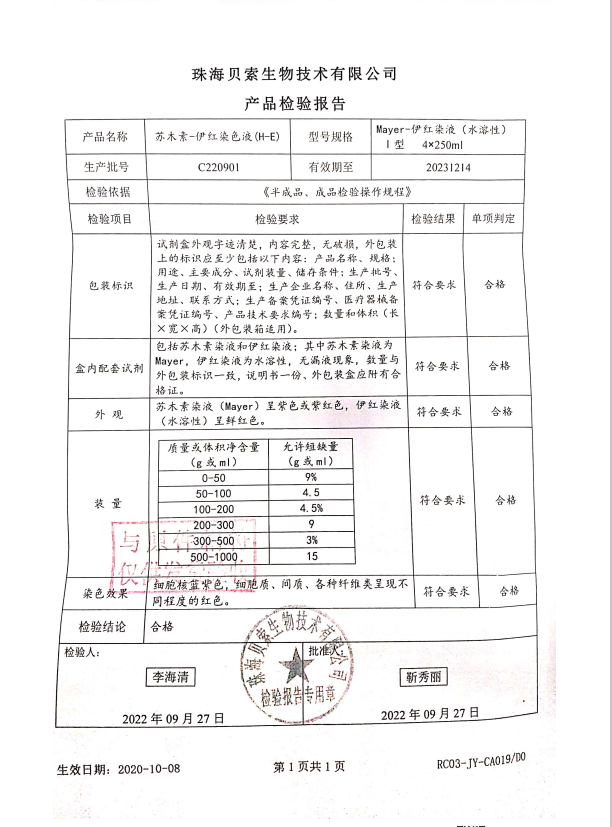 貝索 蘇木素-伊紅染色液(H-E) Mayer-伊紅染液(水溶性)I 型 4x250ml BA4027 C220901