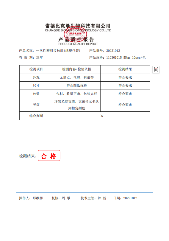 110301015 一次性塑料接觸皿 (紙塑包裝) 55mm 10個(gè)袋 20221012
