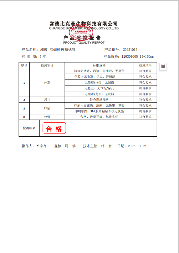 120307005 湘玻? 高硼硅玻璃試管 15x150mm 20221012