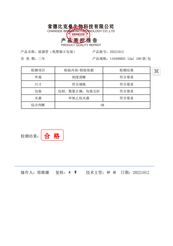 110408005 搖菌管(12ml 紙塑獨(dú)立包裝)1個(gè)袋 100袋包 20221012