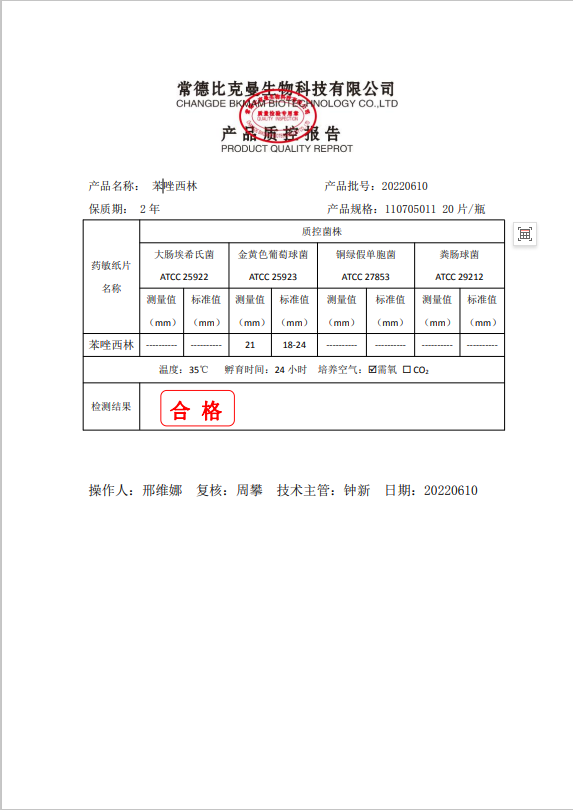 110705011 苯唑西林 1ug 20片瓶 20220610