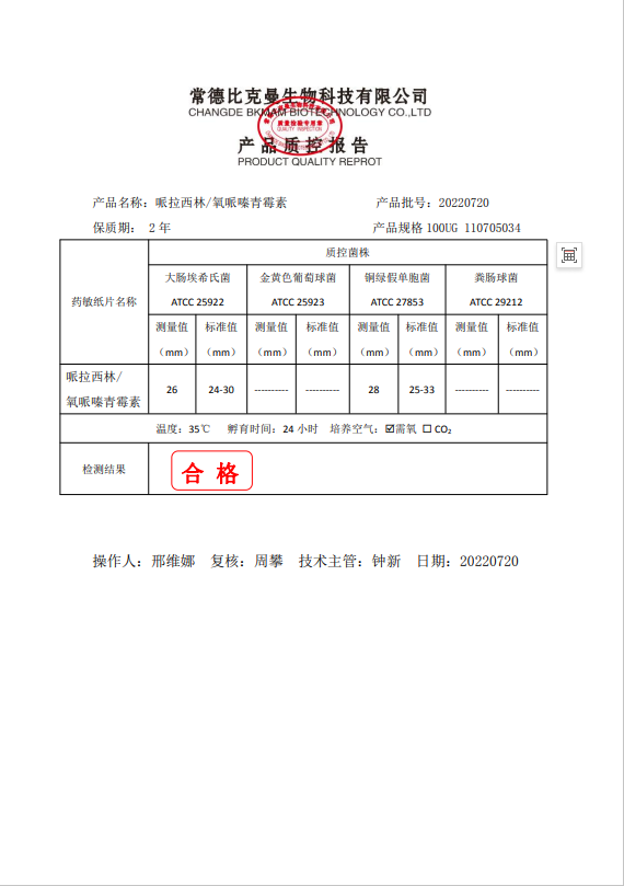 110705034 哌拉西林 100UG 20片瓶 20220720