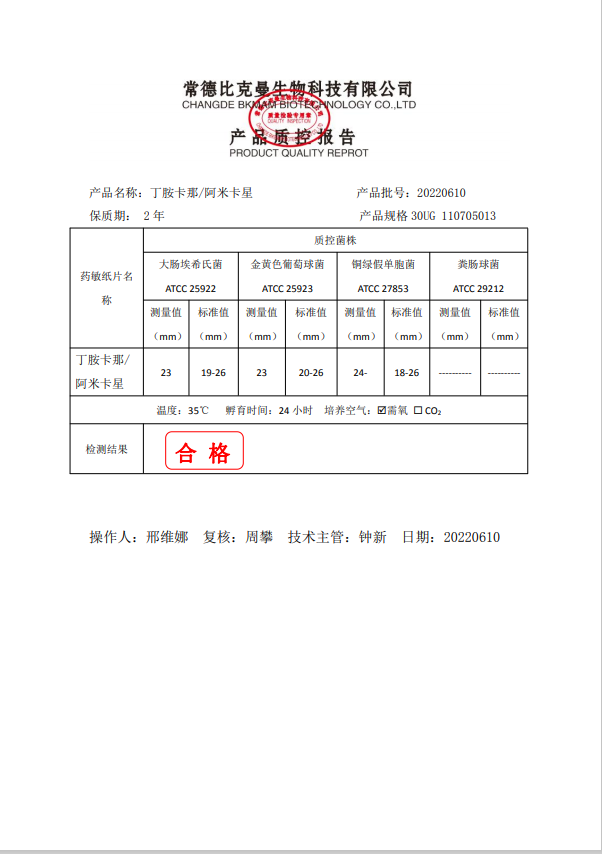 110705013 阿米卡星 30UG 20片瓶 20220610
