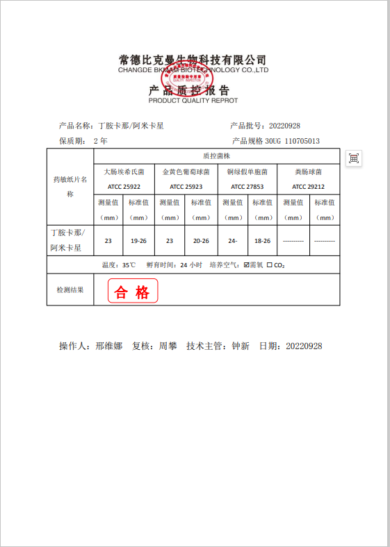 110705013 阿米卡星 30UG 20片瓶 20220928