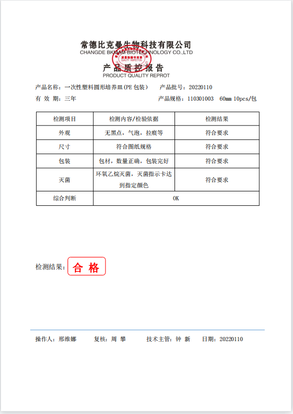 一次性塑料圓形培養(yǎng)皿 (PE 塑料包裝) 60mm 10個(gè)袋 110301003 20220110