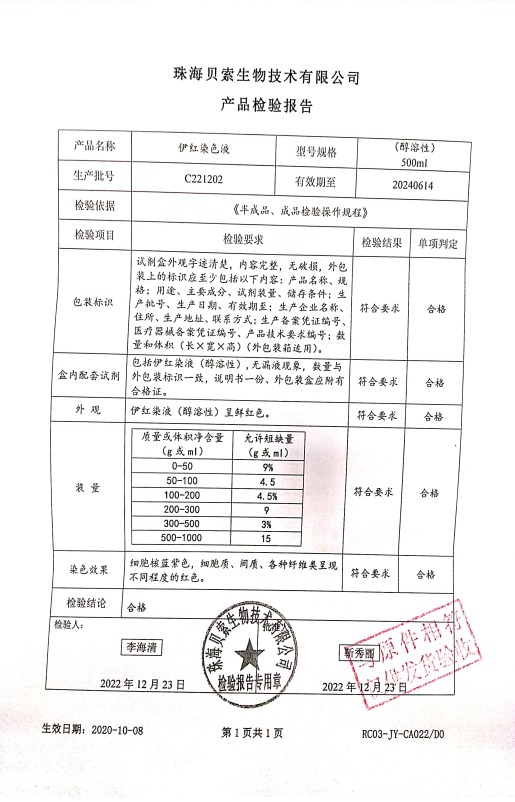 貝索 伊紅染液(醇溶性) 500ml BA4099 C221202