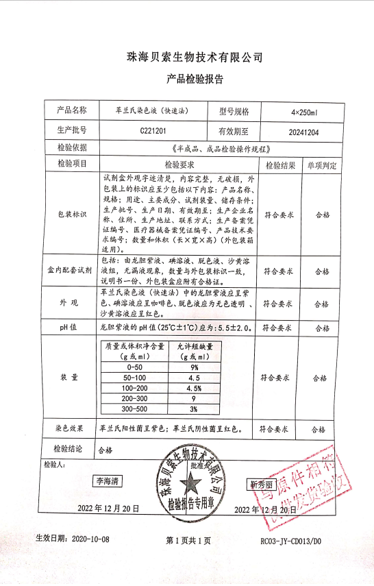 貝索 革蘭氏染色液(快速法) 250ml4盒 BA4012 C221201