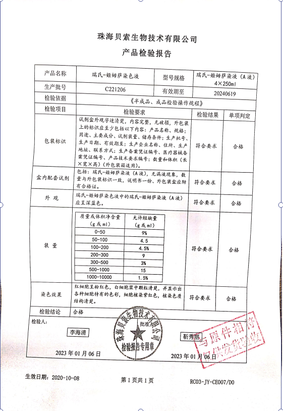 瑞士-姬姆薩染色液 (A液) 4x250ml C221206