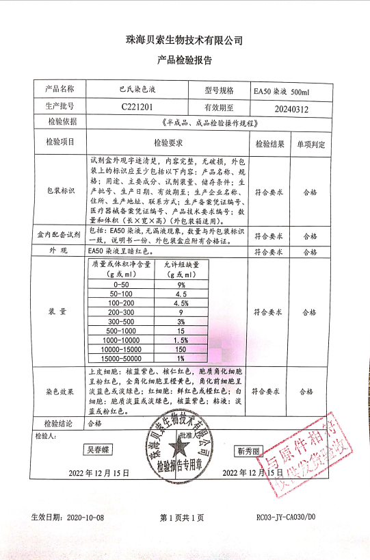 貝索 巴氏染色液 EA-50 500ml BA4033A C221201