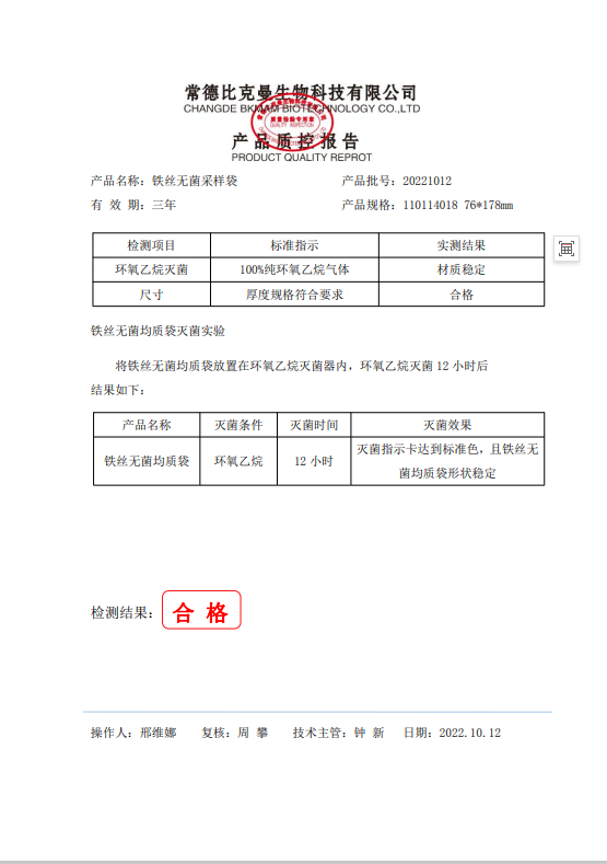 110114018 鐵絲無(wú)菌采樣袋 76x178 (帶書寫區(qū)域) 100個(gè)裝 20221012