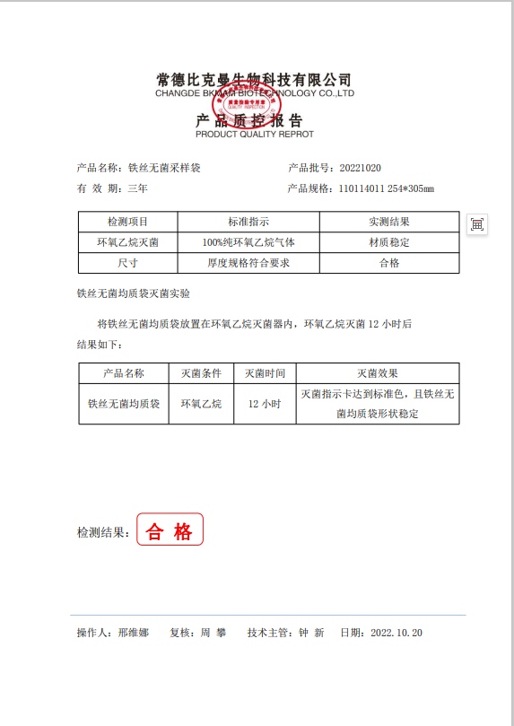 110114011 鐵絲無菌采樣袋 254x305 (帶書寫區(qū)域) 50個裝 20221020