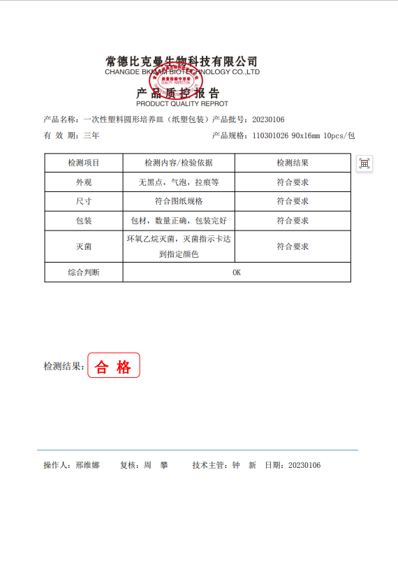110301026 比克曼生物 一次性塑料圓形培養(yǎng)皿 (紙塑包裝) 90x16mm 10個袋 20230106