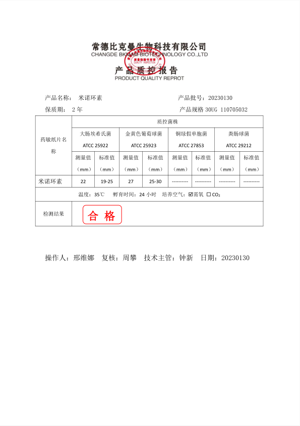 110705032 比克曼生物 米諾環(huán)素 30UG 20片瓶 20230130