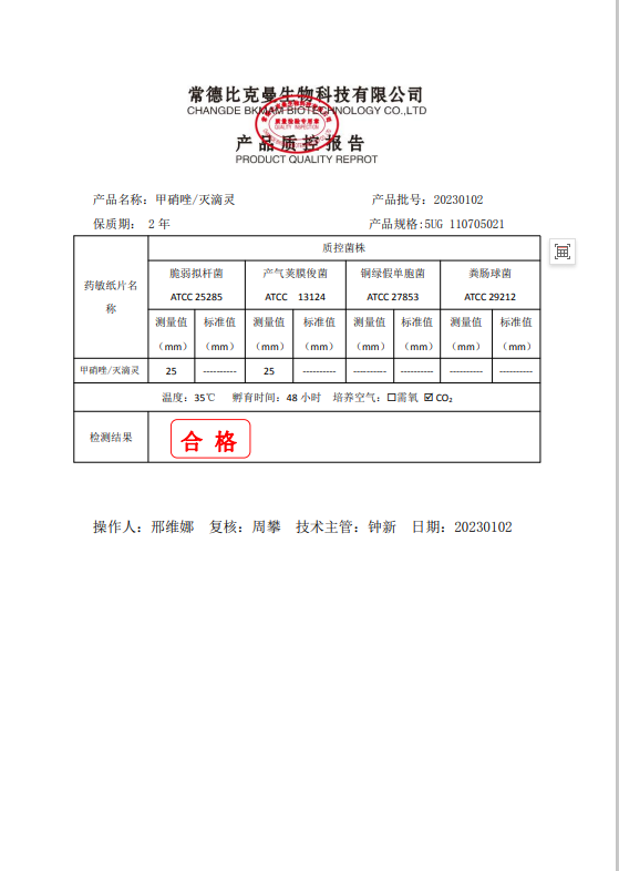 110705021 比克曼生物 甲硝唑 滅滴靈 5ug 20片瓶 20230102