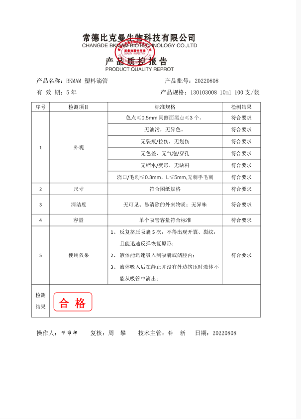 130103008 BKMAM 塑料滴管 10ml 100支袋 20220808