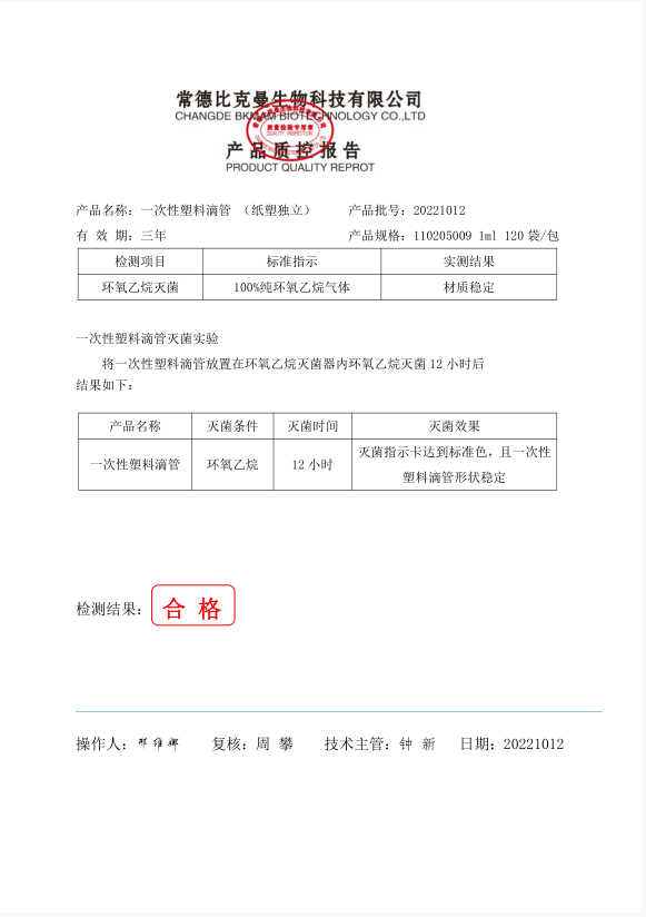 110205009 比克曼生物 紙塑滴管 (紙塑獨立) 1ml 1支袋 120袋包 20221012
