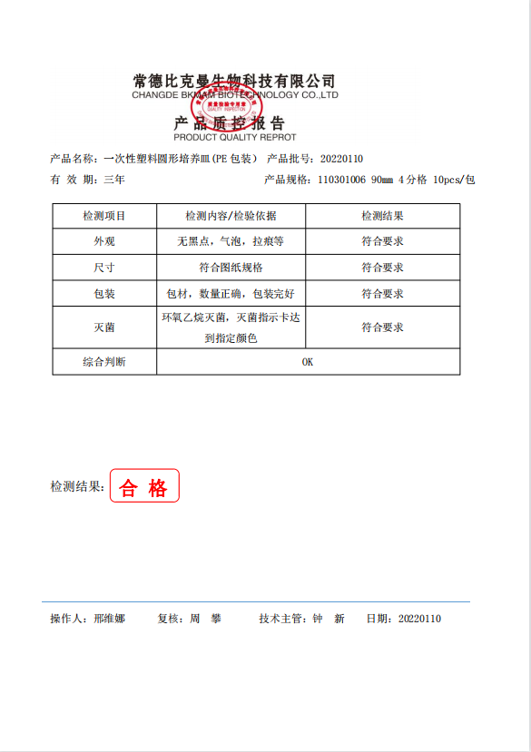 一次性塑料圓形培養(yǎng)皿 (PE 塑料包裝) 90mm4分格 10個(gè)袋 110301006 20220110
