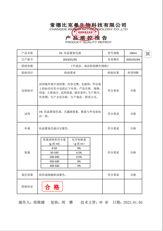 110703012 比克曼生物 結(jié)晶紫染色液 1% 100ml 1支裝 20230105