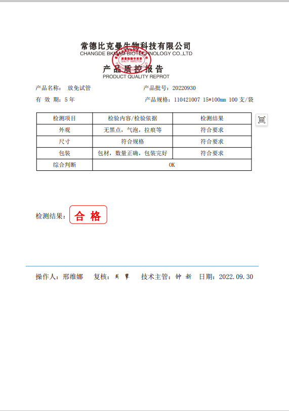 110421007 比克曼生物 放免試管 15x100mm 100支袋 20220930