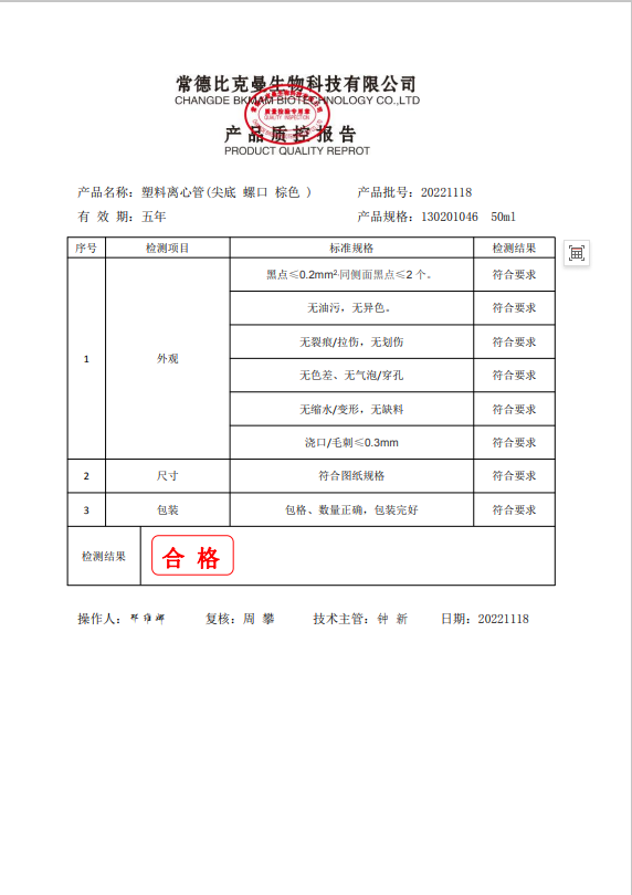130201046 BKMAM 離心管尖底螺口 棕色 50ML 20221118