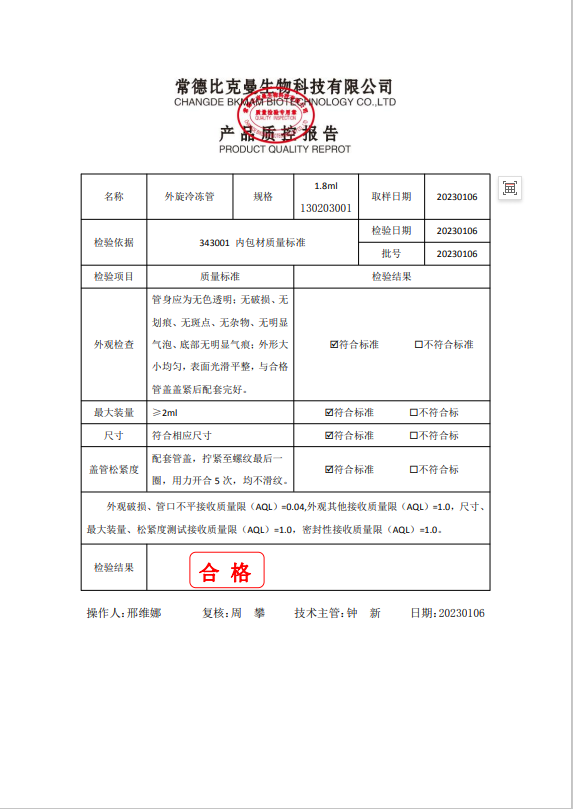 130203001 BKMAM 冷凍管 1.8ml 500個(gè)袋 20230106