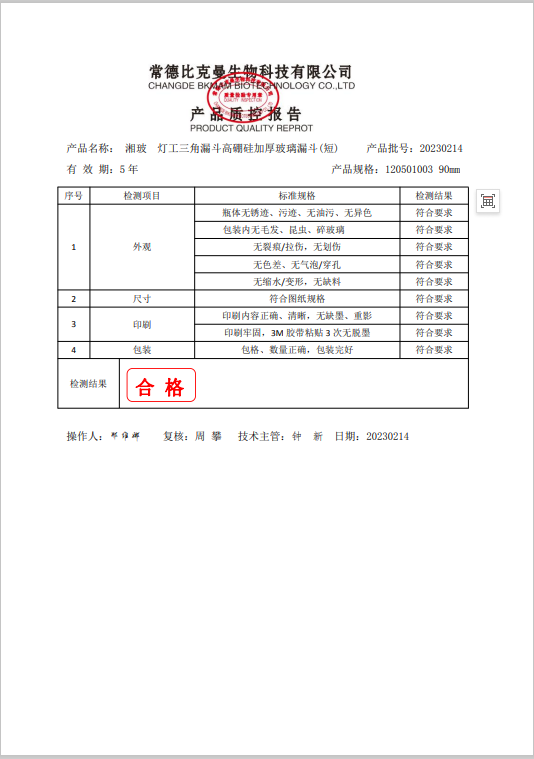 120501003 湘玻 燈工三角漏斗高硼硅加厚玻璃漏斗(短) 90mm 10個盒 20230214
