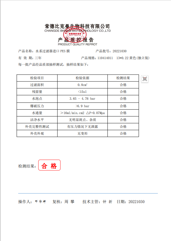 110414011 比克曼生物 水系過(guò)濾器 進(jìn)口PES膜 13x0.22 黃色 (獨(dú)立裝) 20221030