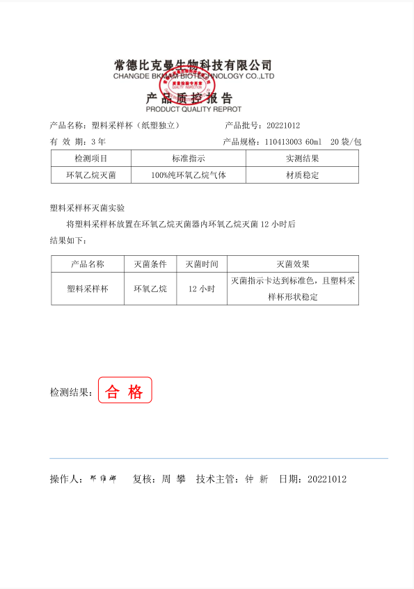 110413003 比克曼生物 采樣杯 (紙塑獨立) 60ml 1個袋 20袋包 20221012