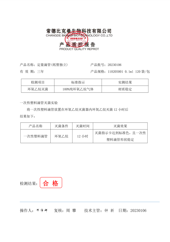 110205001 比克曼生物 定量滴管(紙塑獨立) 0.1ml 1支袋 120袋包 20230106