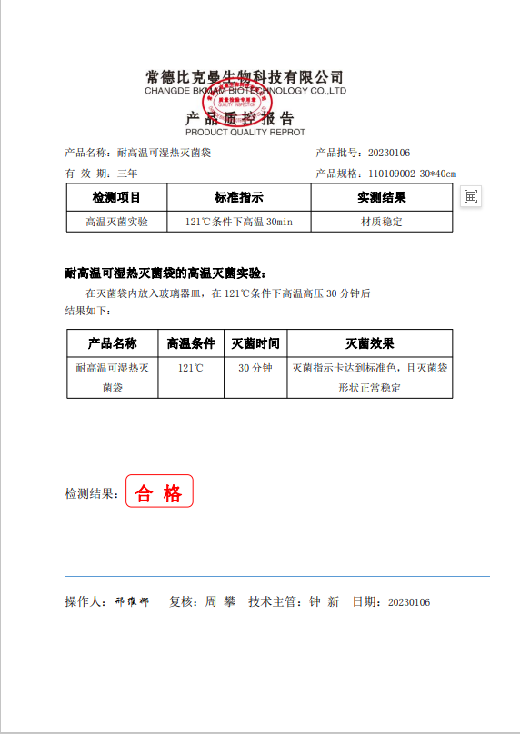110109002 比克曼生物 可濕熱滅菌高溫袋 30x40cm 20230106