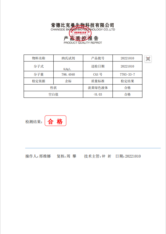110702070 比克曼生物 納氏試劑 100ml 瓶 20221010