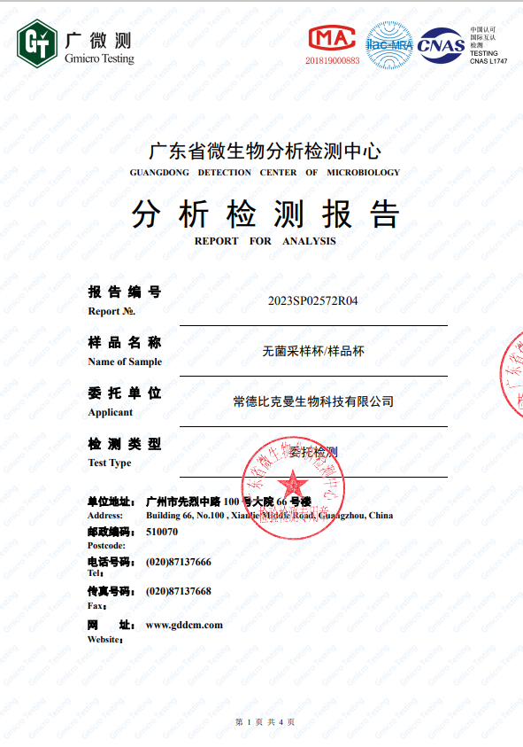第三方報(bào)告 2023SP02572R04-無菌采樣杯樣品杯20230310