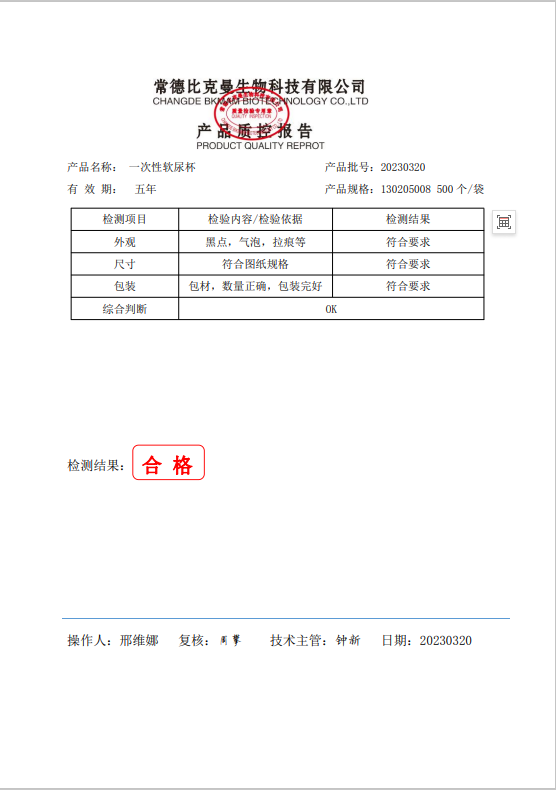 130205008 BKMAM 一次性軟尿杯 500個袋 20230320