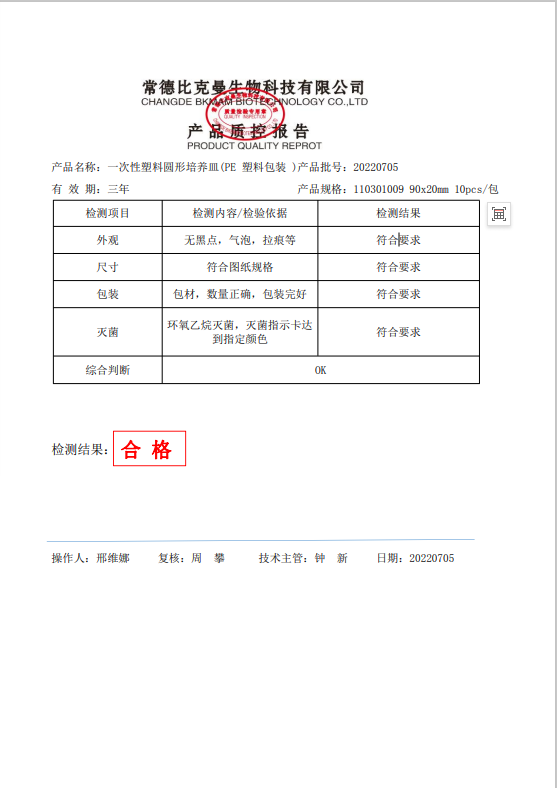 110301009 一次性塑料圓形培養(yǎng)皿 (PE 塑料包裝) 90x20mm 10個袋 20220705