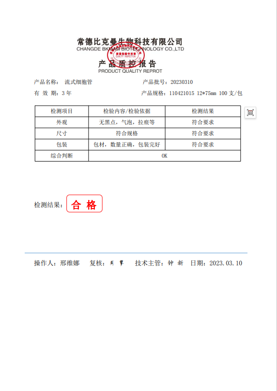 110421015 bkmamlab 流式細(xì)胞管(按扣蓋款) 5ML 12x75MM 100支袋 20230310