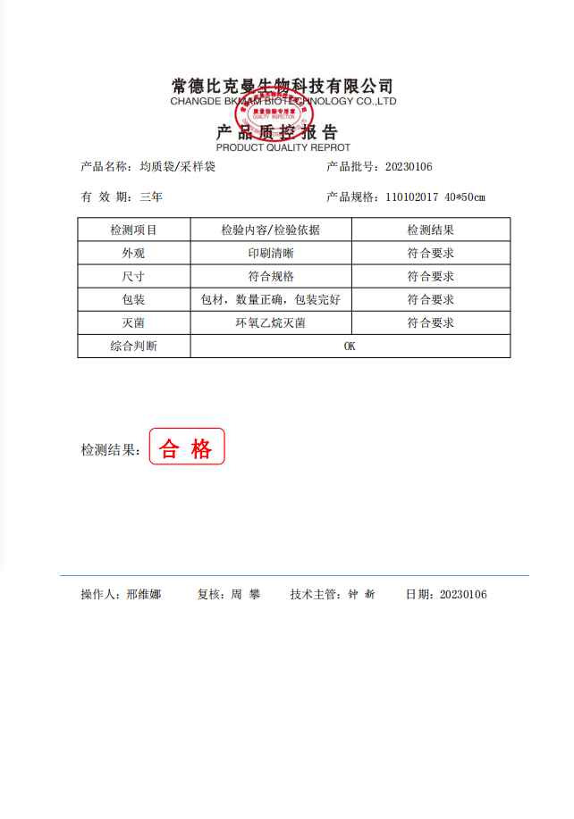 110102017 比克曼生物 無菌采樣袋 40x50 (帶壓條) 50個裝 20230106