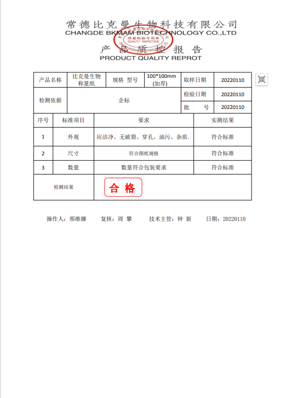 110415005 比克曼生物 稱量紙 100x100mm(加厚) 20220110